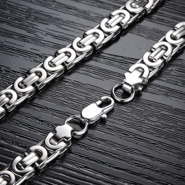 Whether worn solo or paired with a pendant, this Byzantine chain complements both streetwear and formal attire, making it a must-have in every man’s collection.