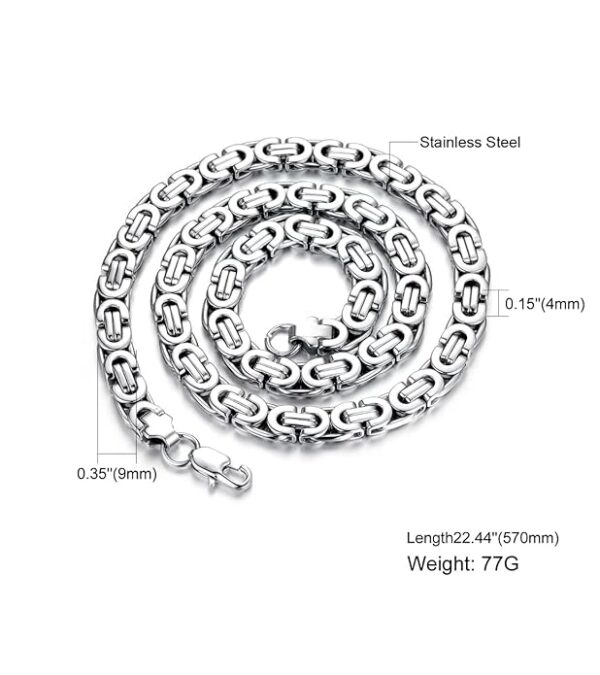 Men’s Stainless Steel Byzantine Chain Necklace – 9mm Thick, 22.4 Inch