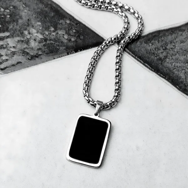 This Geometric Black Enamel Rectangular Pendant is designed for those who appreciate clean lines and timeless style. Crafted with precision, the sleek rectangular pendant features a smooth black enamel center framed in polished stainless steel — creating the perfect balance between elegance and edge.