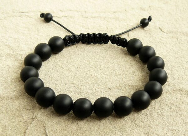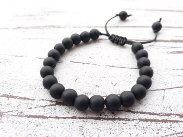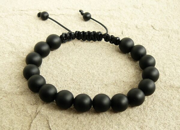 Elevate your style with our Matte Black Onyx Bead Bracelet, a perfect blend of strength and elegance. Crafted with smooth 10mm matte black onyx beads, this bracelet adds a bold yet minimalist statement to any outfit. The adjustable macrame cord ensures a comfortable fit for all wrist sizes, making it ideal for both men and women.